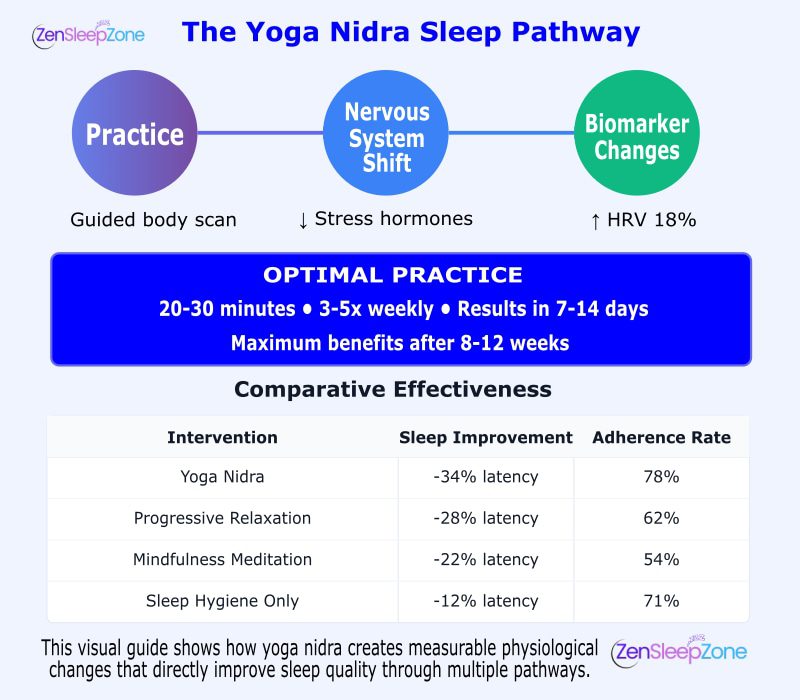 While many relaxation techniques exist, clinical data highlights why Yoga Nidra stands out, particularly regarding sleep latency reduction (the time it takes to fall asleep) and adherence rates. Let’s look at the numbers.