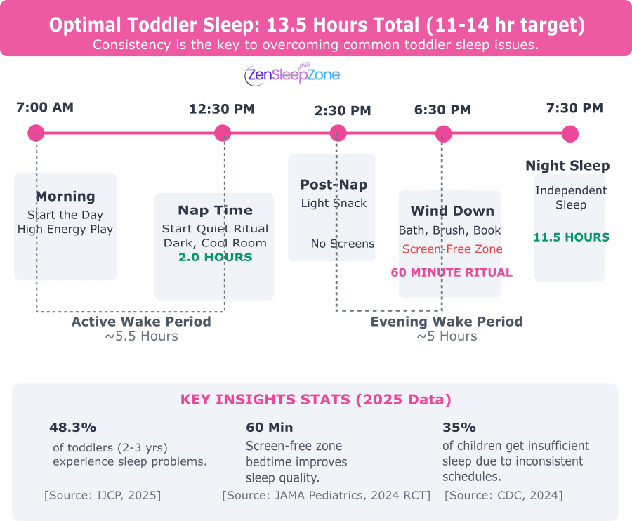 If you are a parent pacing the hallway at 2:00 AM, you are far from alone. According to 2025 data from the International Journal of Clinical Practice (IJCP), a staggering 48.3% of toddlers aged 2-3 years experience sleep problems. Navigating toddler sleep issues can feel like an endless cycle of exhaustion for both the child and the caregivers. However, science and developmental psychology point to a singular, powerful solution: strict consistency within a structured daily timeline.